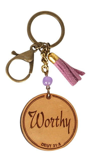 Affirmation Engraved Leather & Wood Keychain - Worthy