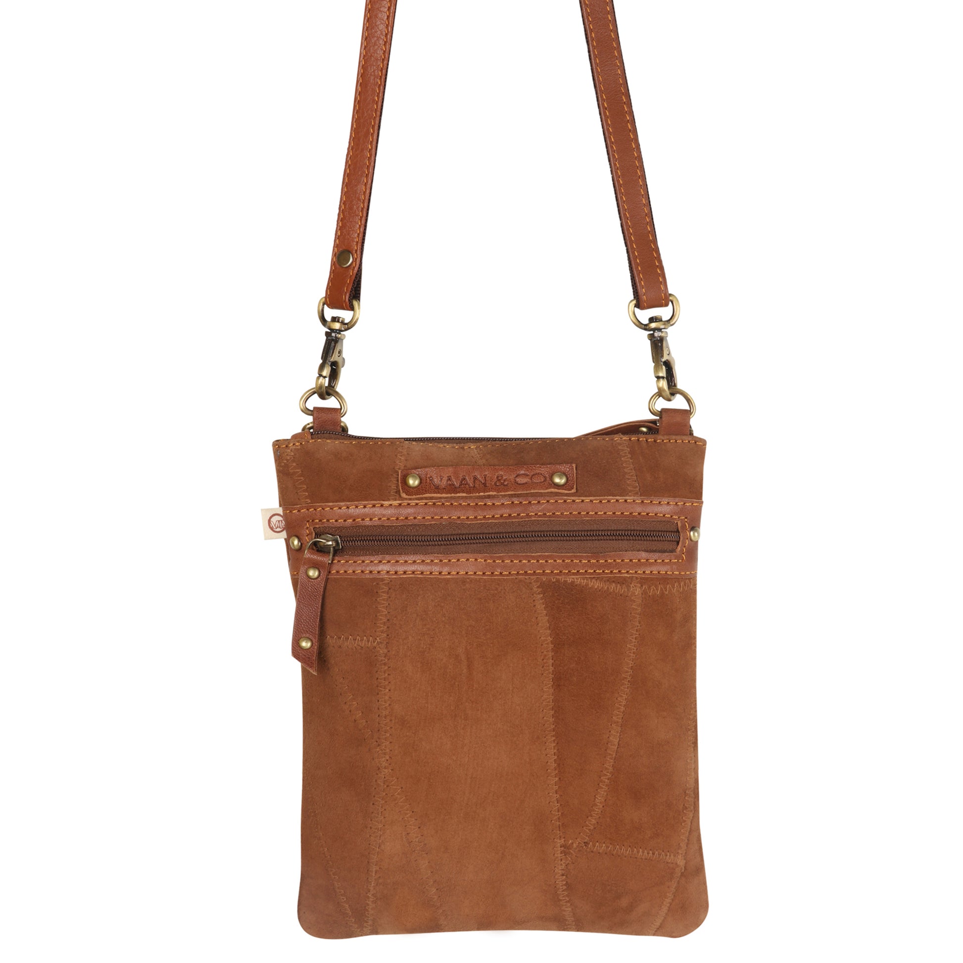 Made of durable, suede genuine leather, this is the perfect silhouette for weekends and travel. The zip-top design is just large enough for the essentials, and it comes with an adjustable strap for hands-free wear.