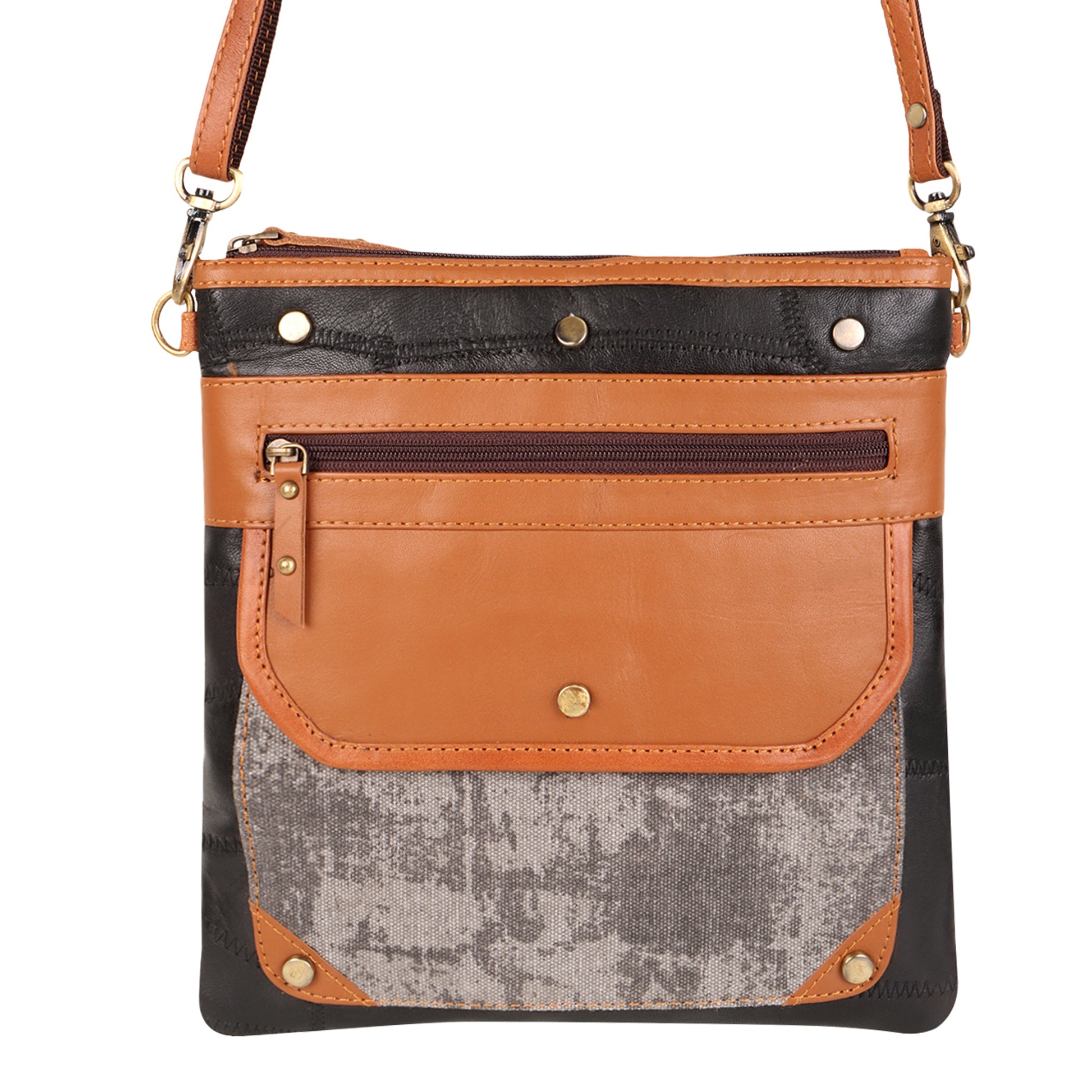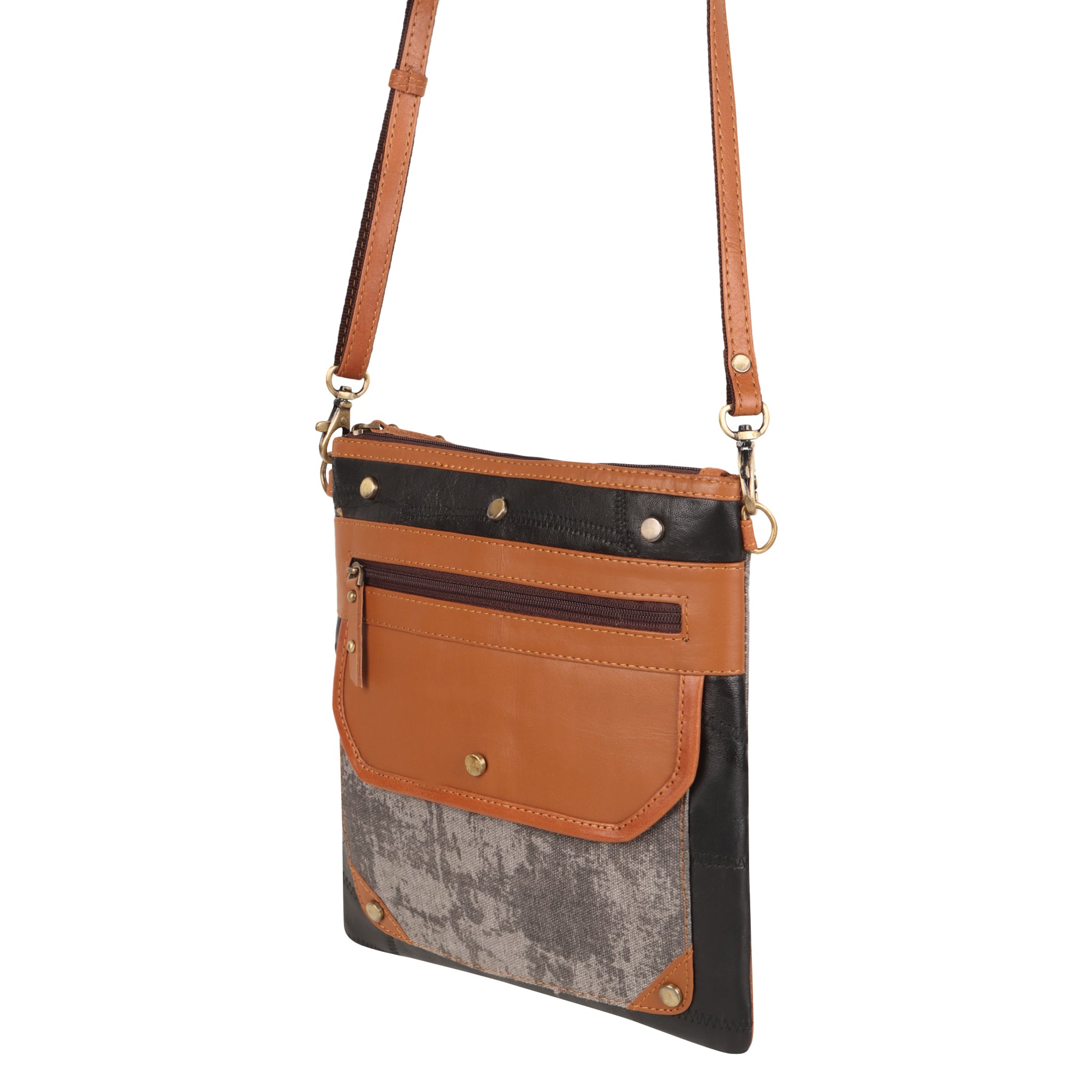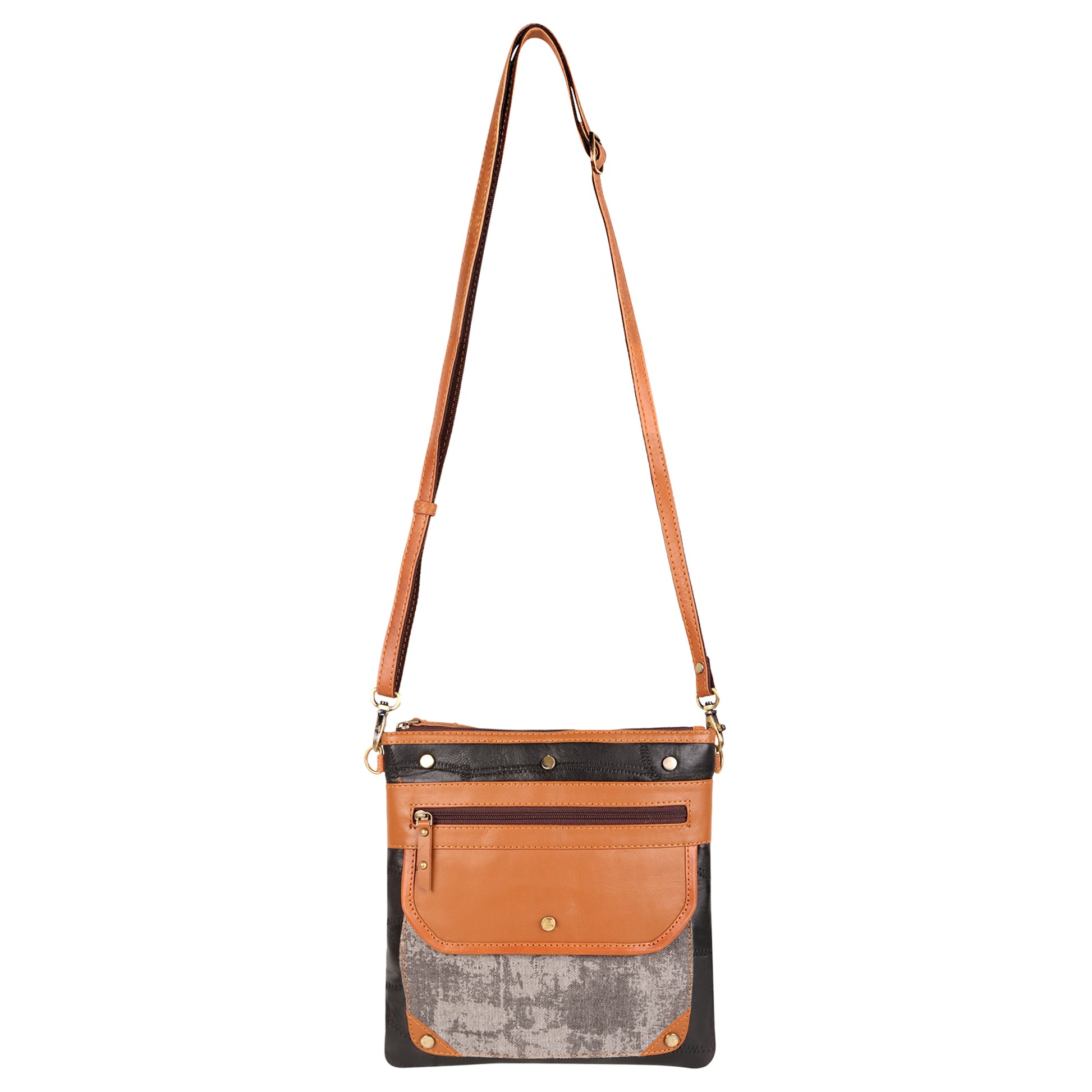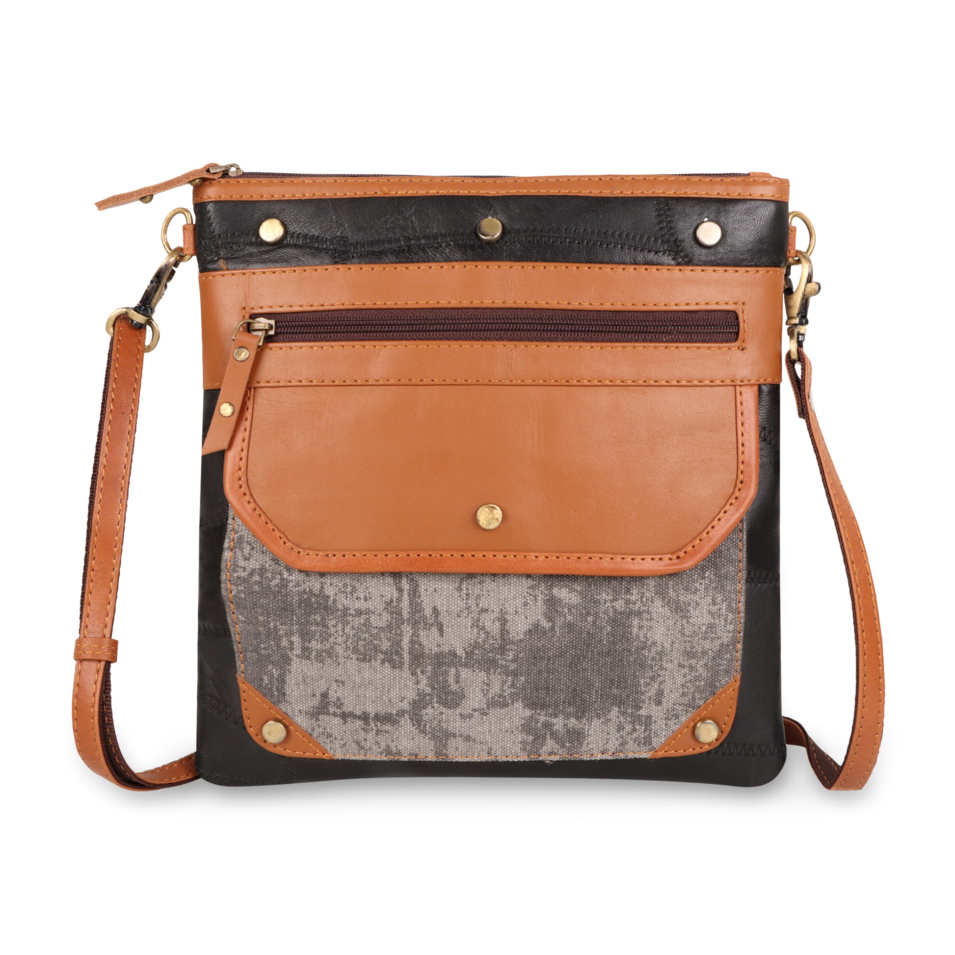 Stay organized and on-task with the Dawn upcycled genuine leather crossbody bag. The easy-to-wear bag has strategically placed interior and exterior pockets for ultimate functionality.