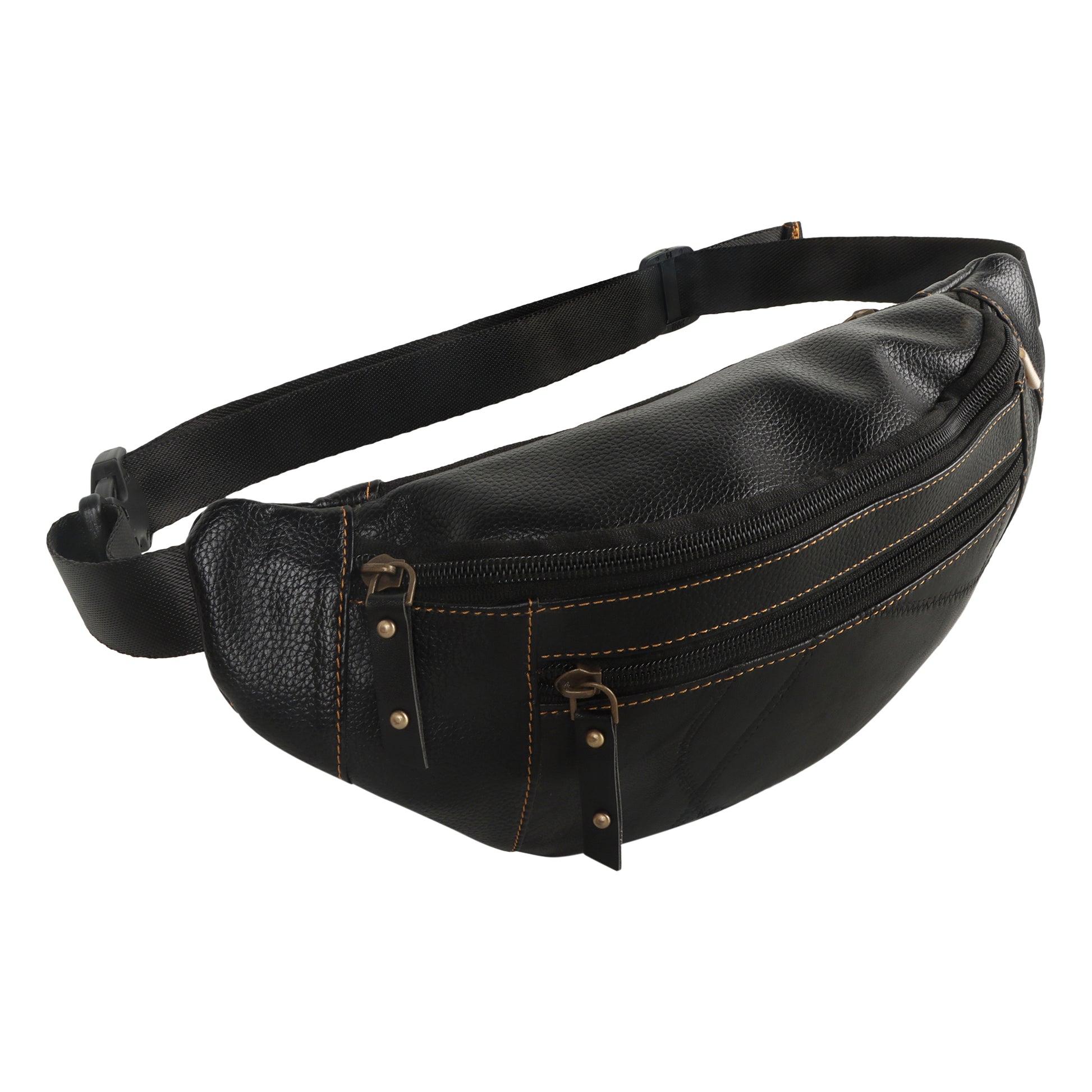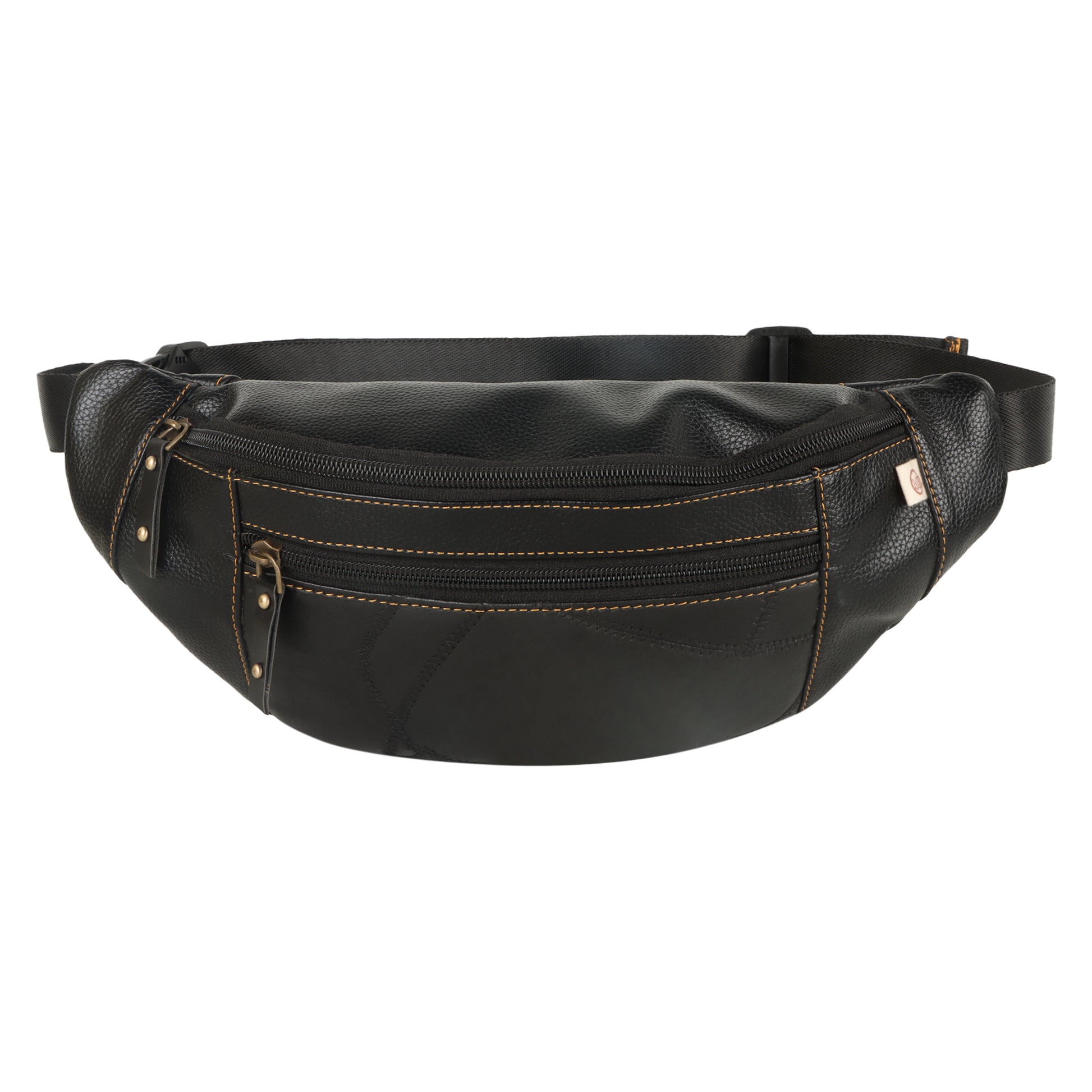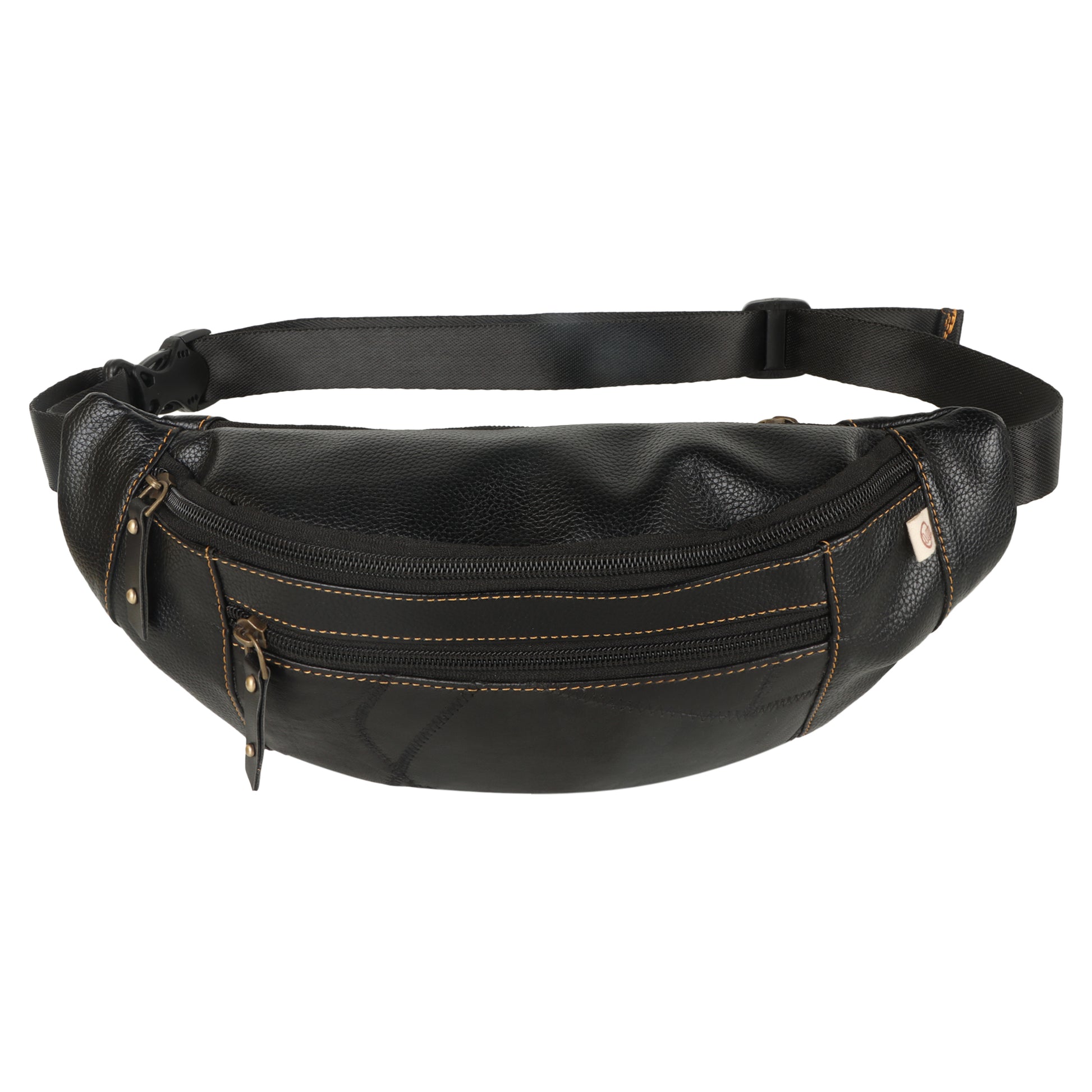 Featuring a spacious main compartment and two zippered exterior pockets, the convenience of a sustainable belt bag frees up your hands for more important things. With storage space for items like your cellphone, wallet, keys, this upcycled leather fanny pack is the perfect addition to your wardrobe.