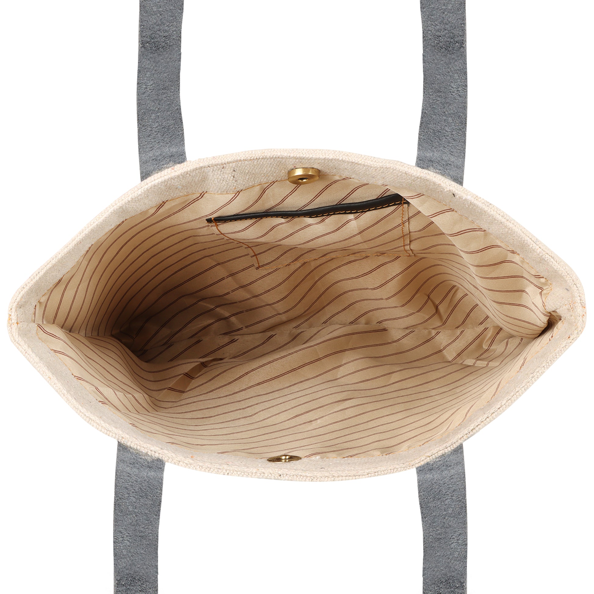 This gorgeous canvas and upcycled leather tote bag will replace your everyday purse! With enough room to carry your day-to-day essentials & designed with life in mind, the tote is made with our durable leather and upcycled canvas.