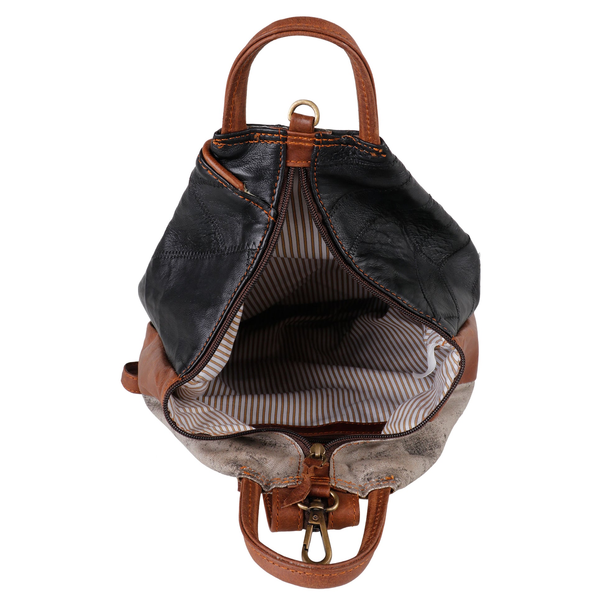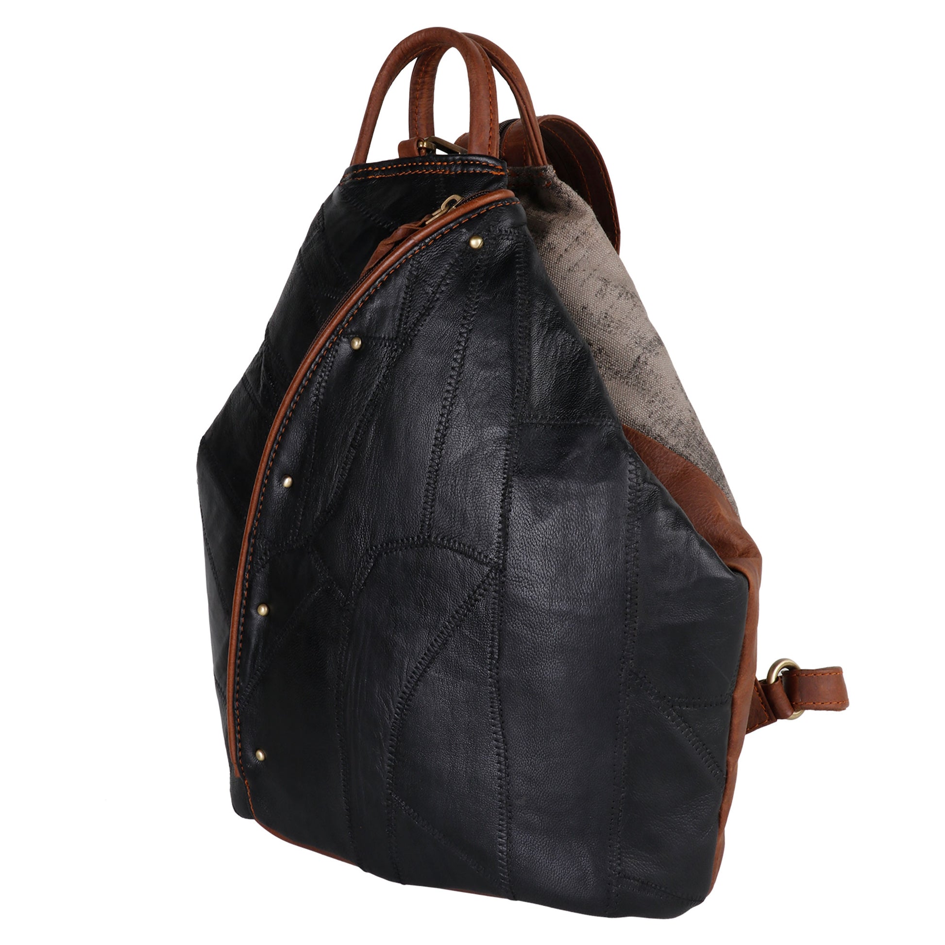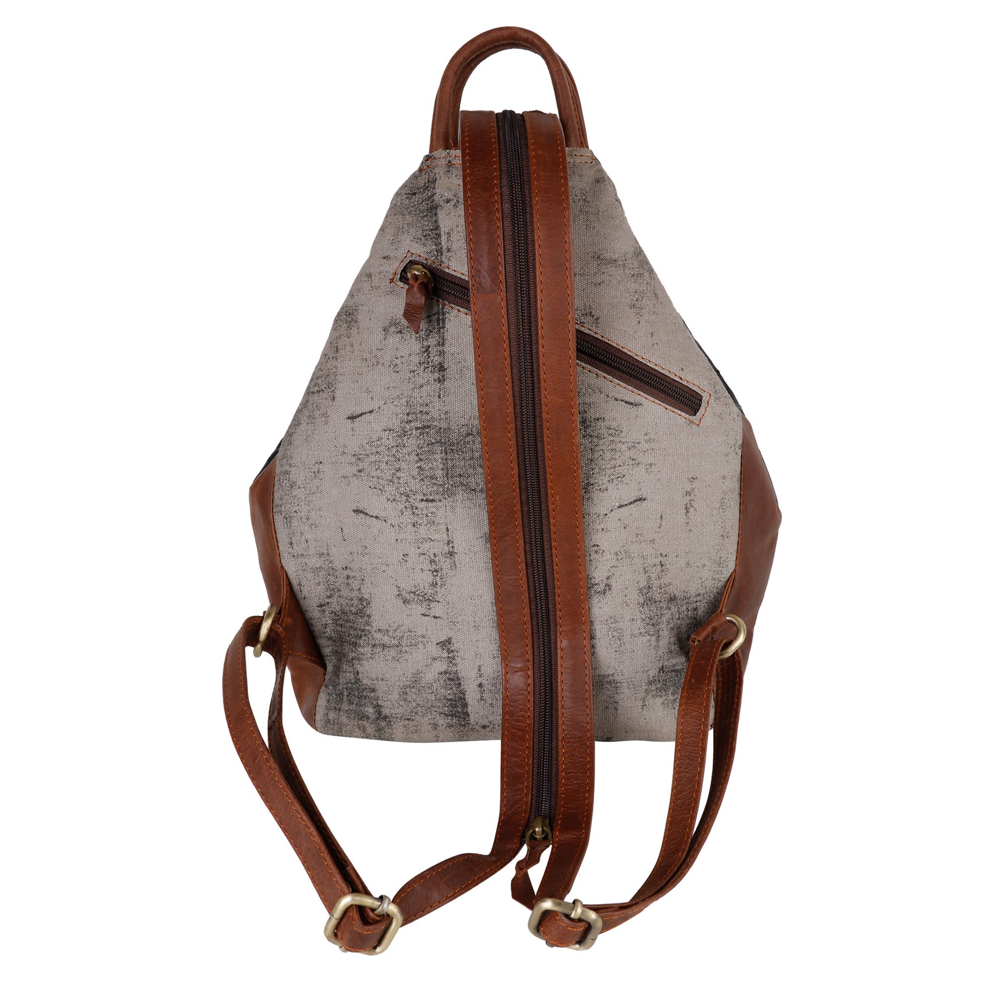 A slender backpack, this streamlined design in upcycled genuine leather is ready for adventure. Zip pockets inside and out and a wide zipper strap make this sporty style ideal for running around town, outdoor treks or travel—plus, it easily fits an iPad.